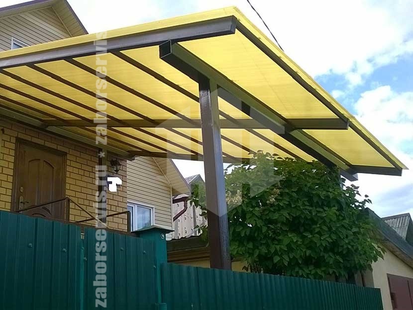 Навесы монтируется не ближе одного метра от примыкающего забора.
