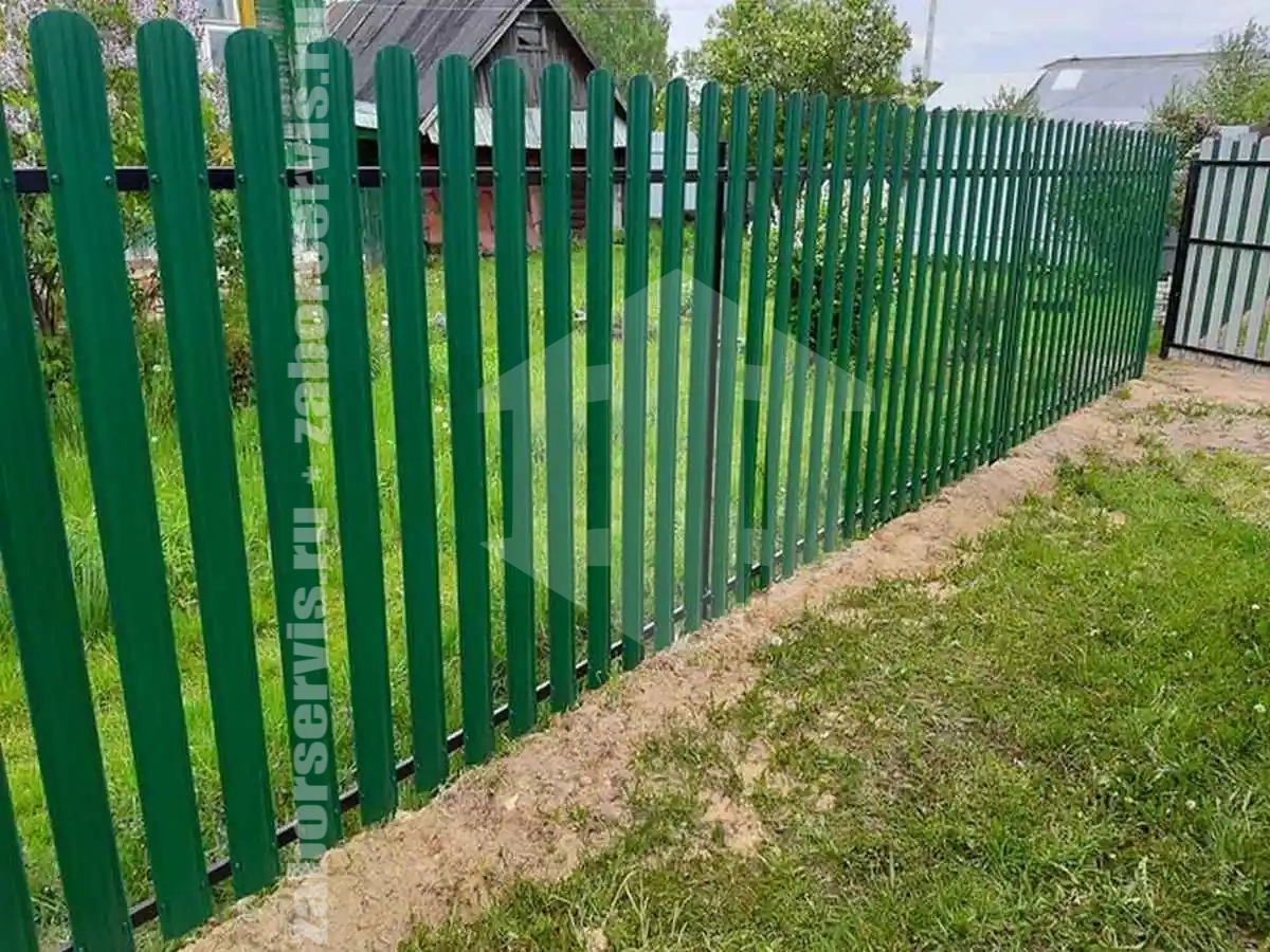 Забор из металлического штакетника с воротами 59 метров