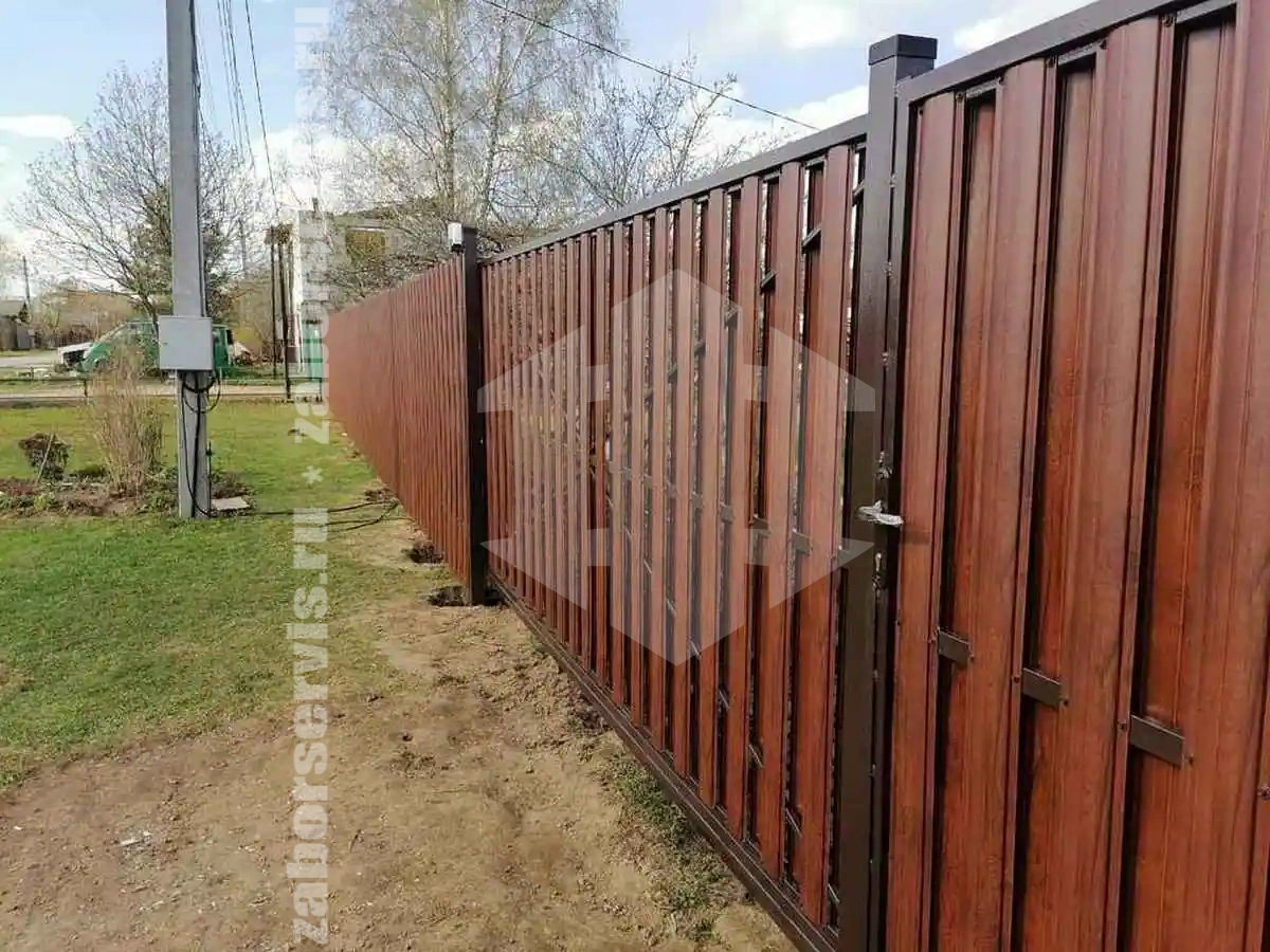 Заборы из металлического штакетника шахматка 44 метра