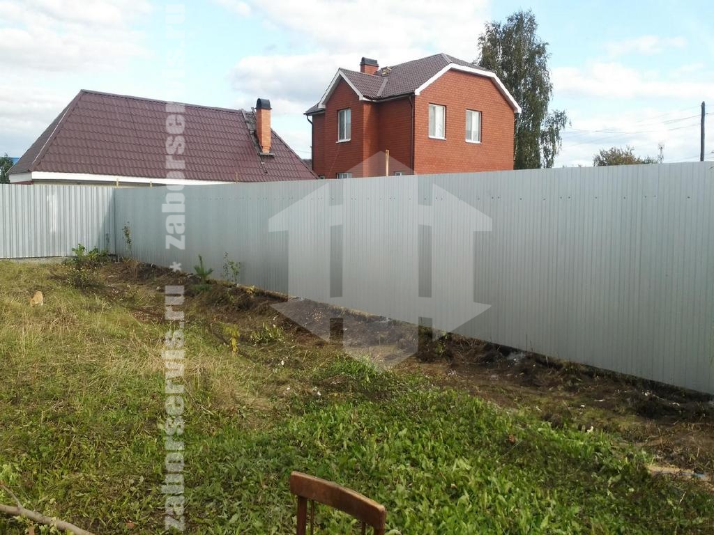 Забор из профнастила с утрамбовкой щебнем 117 метров