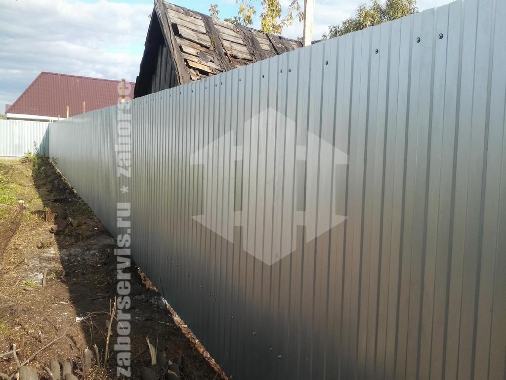 Если не брать во внимание процедуру согласования, то на монтаж 35 метров забора из профнастила понадобится один дней. Все материалы для выполнения есть всегда в наличии.