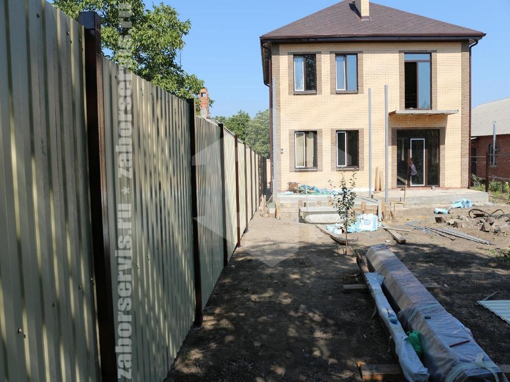 Забор из профнастила с утрамбовкой щебнем 72 метра