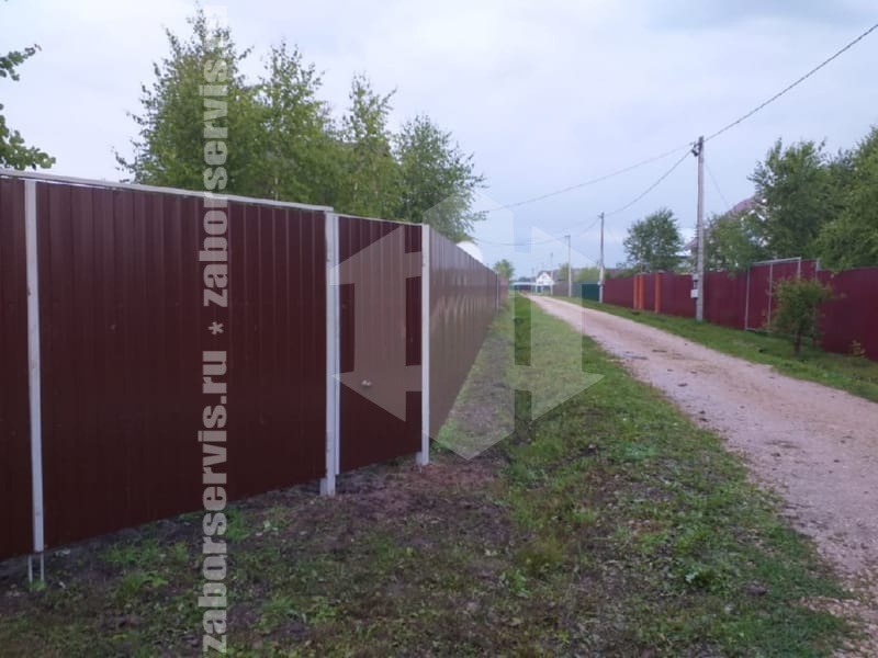 Если не брать во внимание процедуру согласования, то на монтаж 35 метров забора из профнастила понадобится один дней. Все материалы для выполнения есть всегда в наличии.